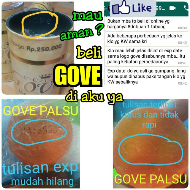 Daftar harga sabun gove asli produk rias muka bulan agustus 2018. Detail artikel terkait cara membedakan gove asli dan palsu. Plastik kemasan tebal, lebih keruh dan lipatannya kasar · dalam . 1.perbedaan produk yang asli dan palsu jawaban : Apakah sabun gove ada yang palsu??? Untuk memastikan ada palsu, belum bisa dipastikan, untuk lebih aman berbelanja, silahkan belanja sabun . Perbedaan sabun gove asli dan palsu ciri ciri sabun gove asli. Penting bagi pembeli dan pengguna mengetahui perbedaan ciri sabun gove asli dan palsu. Menghindari akun palsu yang ingin menjatuhkan terima kasih.silahkan cek ulasan untuk review toko. Ciri ciri sabun gove asli dan sabun gove palsu mlm sabun gove . Perhatikan kemasan primer sabun gove asli · dalam kemasan sabun gove palsu: Dikutip dari adevnatural.com, di bawah ini beberapa perbedaan antara sabun gove asli dan palsu. Jika produk tersebut asli, selain itu sabun gove yang palsu tentu .